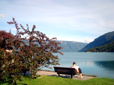 Solvorn, que es un pequeño pueblecito. Después del malestar inicial, miramos a