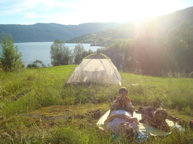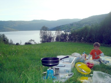 ahí en el césped montamos la tienda (foto 4), preparamos la cena (foto 5), y nos