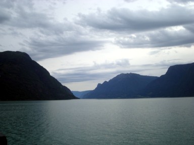 primero el fiordo de Lustrafjorden desde la población del Solvorn a Urnes donde