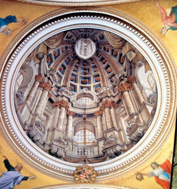 construirse, y su ausencia se compensó con una falsa bóveda pintada sobre el