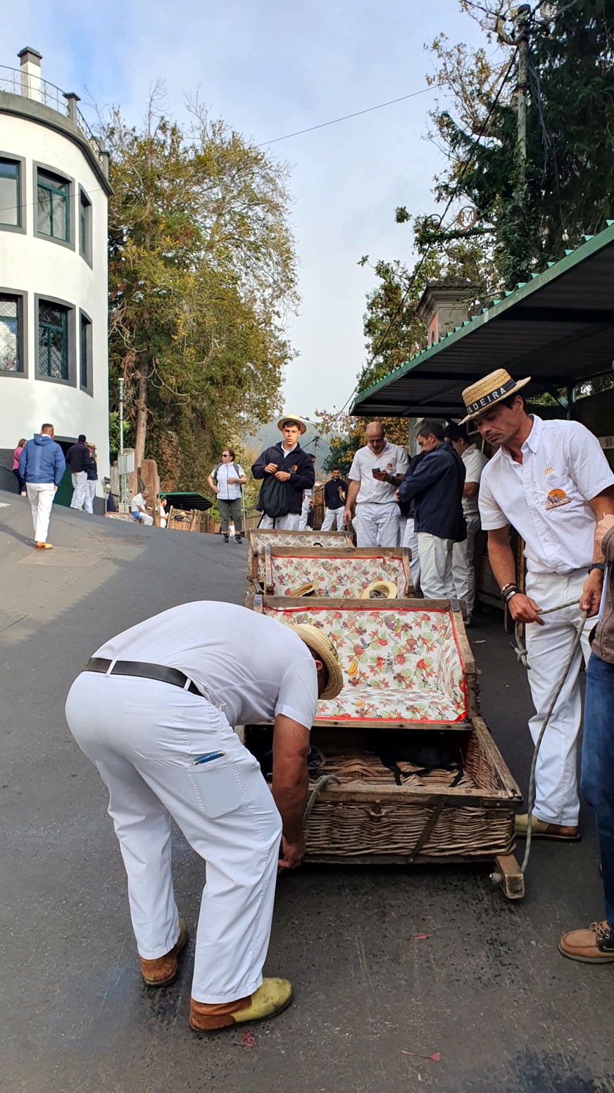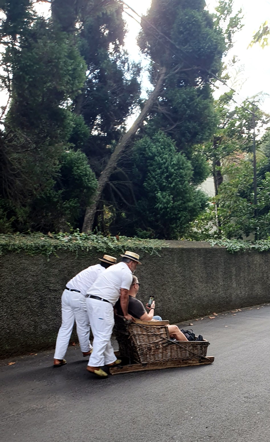 Una curiosidad, es que el descenso se puede realizar en parte hasta Funchal en trineo de cestas de madera y mimbre, conducidos por dos "carreiros"