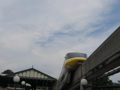 un moderno monorraíl (foto 1), o en barco (foto 2). Ambos te dejan en la