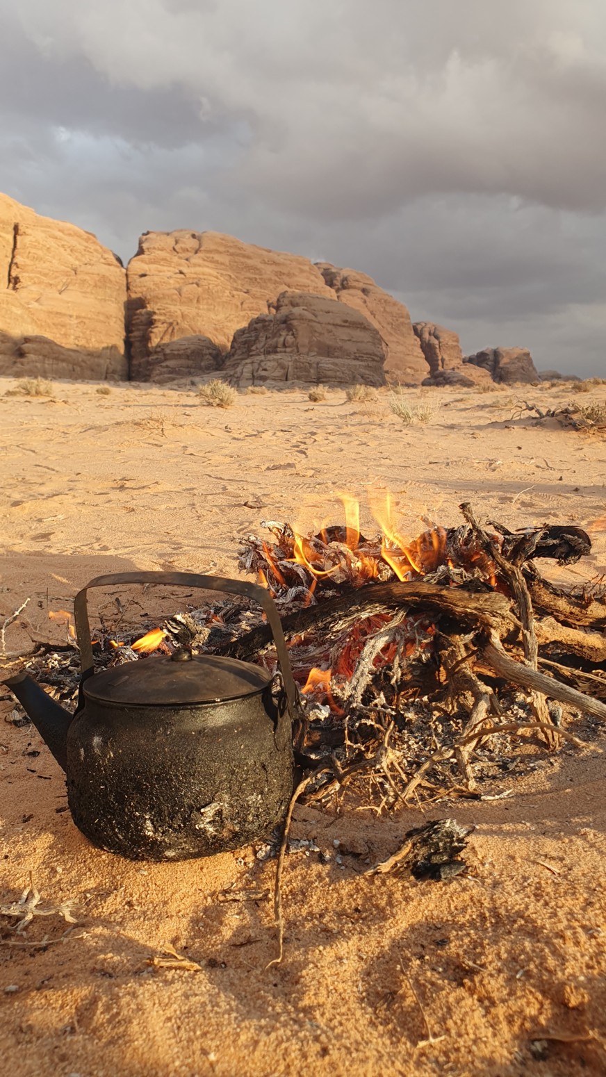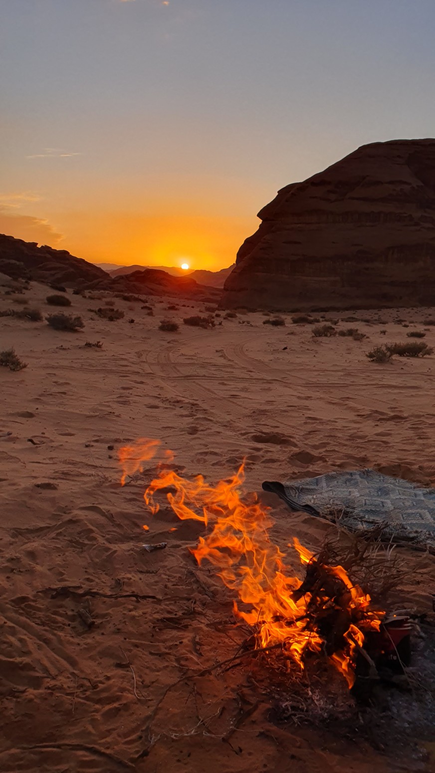 fantástica puesta de sol junto a una hoguera donde se preparaba el
