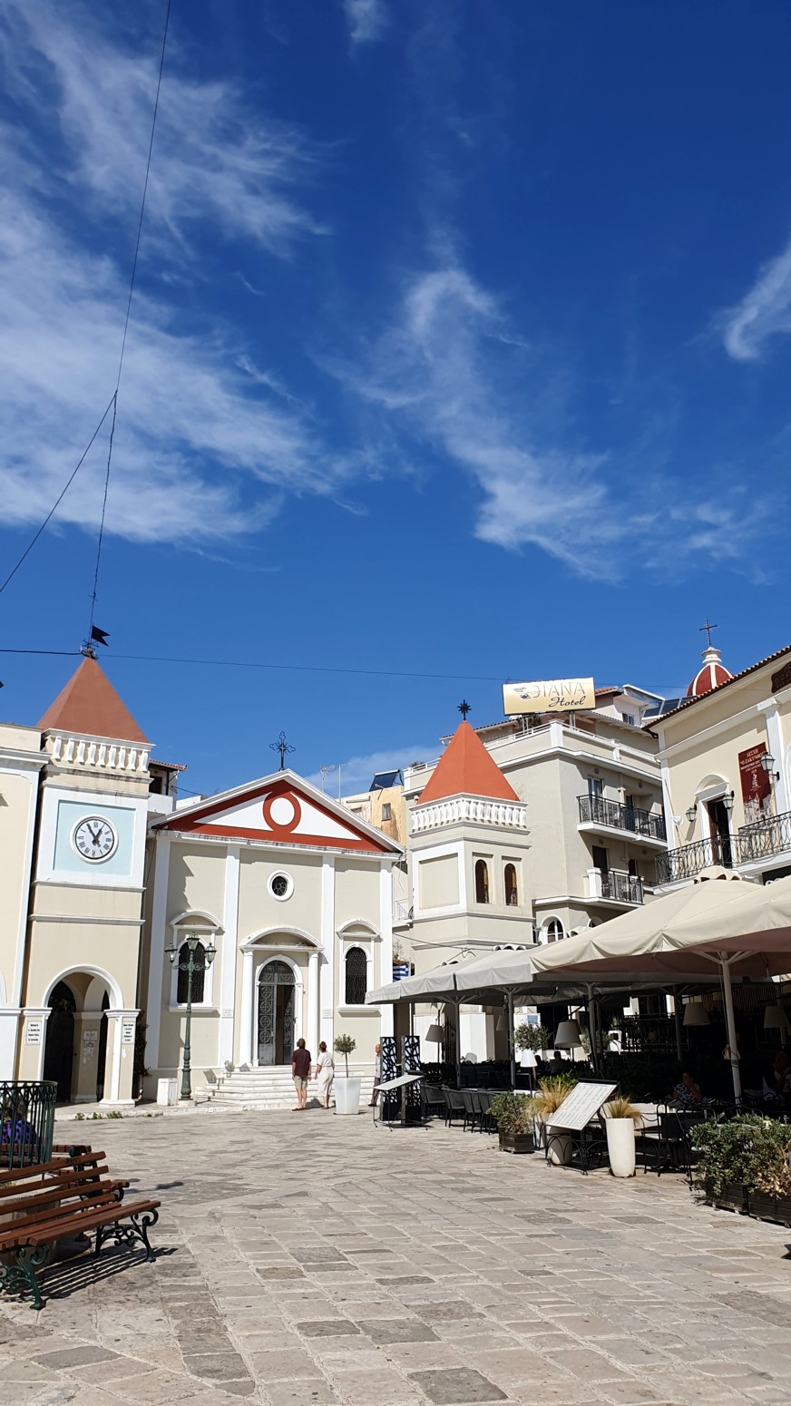 El centro de la ciudad se ha esforzado por mantener el viejo estilo y en la plaza Solomos se pueden apreciar esos intentos.